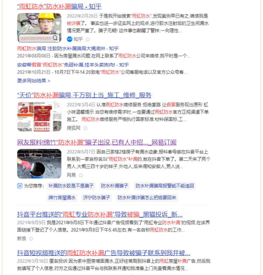 二是平台防水广告投诉,如果是从网上看的的这类广告,可以投诉平台,像某音这类平台若投放防水类型的广告是需要交纳押金的,当然某些平台是没有押金的,也可以投诉平台广告试一下,当然也可以去黑猫投诉或者其他相关互联网平台投诉曝光。