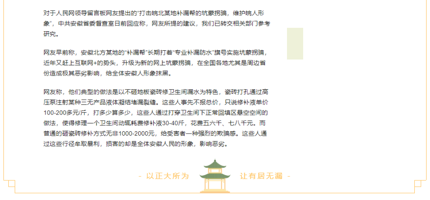 三是如何保障自身合法权益。四川蜀旺科兴建筑工程有限公司的专家给了四点建议∶一、客户应登陆正规治漏企业官网进行报修,或者找当地有合法经营权且具备施工资质的正规企业维修;二、应确保上门施工人员持有治漏专业技能证书;三、确认维修使用的材料为正规合格产品;四、签订正式的维修服务合同或协议,约定服务内容、费用、维修效果及质量保证,并索要正规发票,保障售后权益。