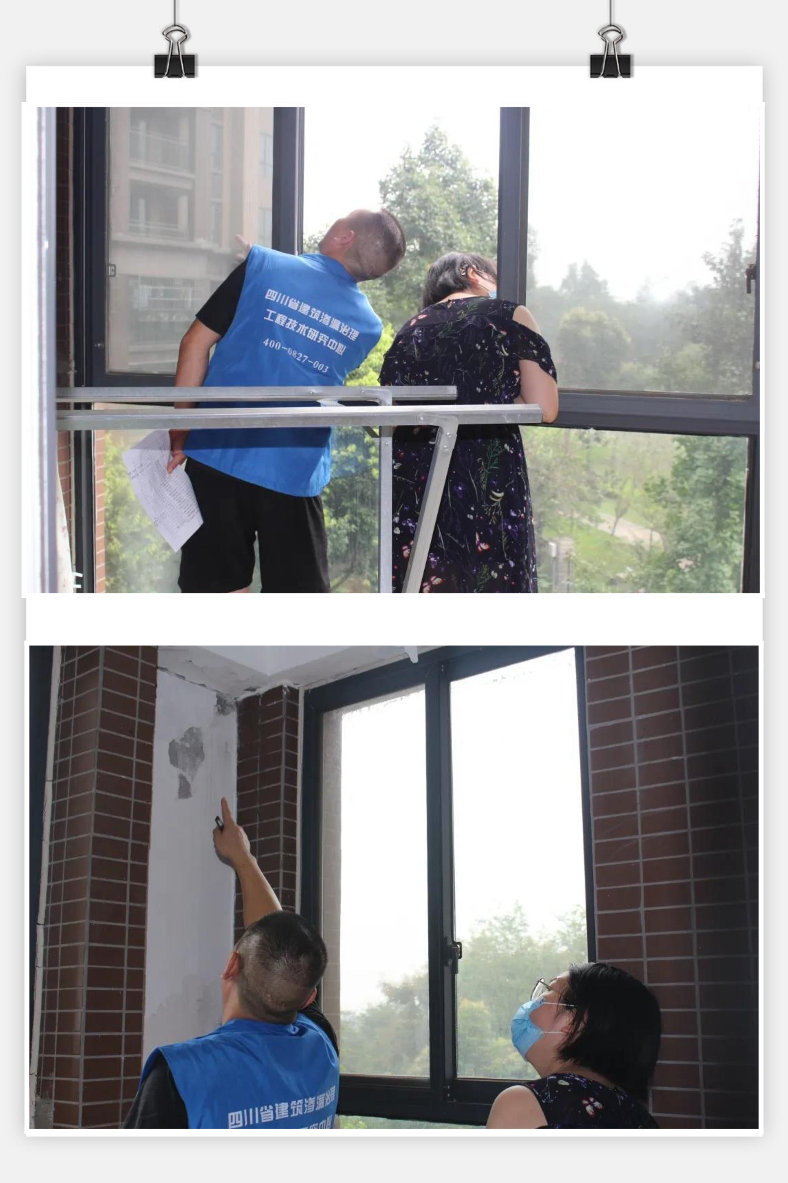 通过现场勘查,发现大多业主的渗漏问题集中在窗台和阳台,雨水渗漏至屋内,导致屋内墙体发霉,饰面层脱落,但其根本还是在于外墙年久失修所导致的外墙饰面层开裂,保温层空鼓遇水形成室内渗漏。但该小区已过了房屋质保期,而该小区全体1200户业主也并未就动用维修基金达成一致意见,面对夏季暴雨连绵的成都,受到影响的这20多家住户,深感无奈。后续,中心和平台将继续关注跟进此小区的渗漏问题,并无偿提供技术咨询服务。